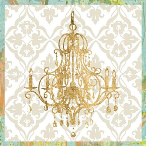 Damask Chandelier II White Modern Wood Framed Art Print with Double Matting by Goldberger, Jennifer