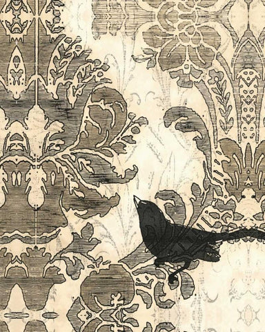 Damask Songbird I White Modern Wood Framed Art Print with Double Matting by Vess, June Erica
