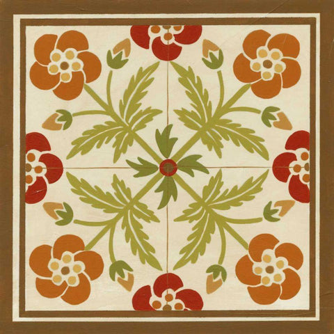 Floral Folk Tile III White Modern Wood Framed Art Print with Double Matting by Vess, June Erica