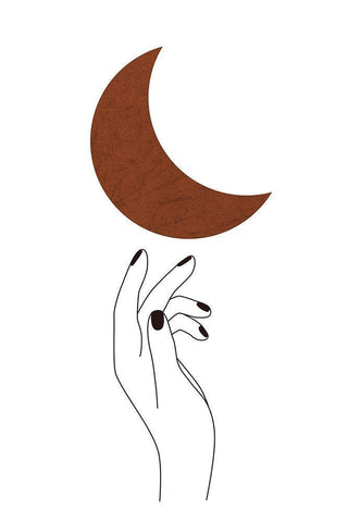 Hand and Moon White Modern Wood Framed Art Print with Double Matting by JJ Design House