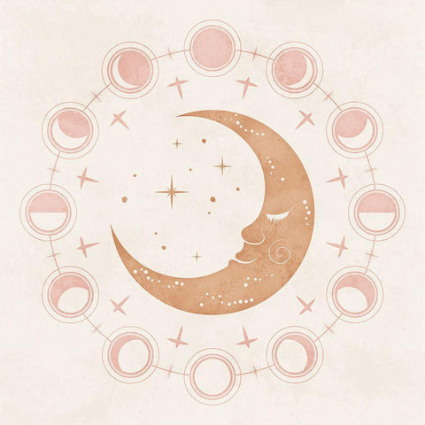 Boho Moon White Modern Wood Framed Art Print with Double Matting by Blue, Nina