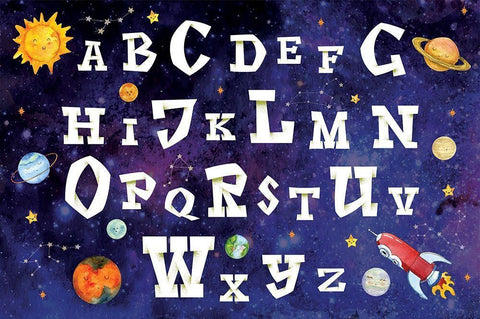 Space Alphabet White Modern Wood Framed Art Print with Double Matting by ND Art