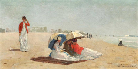 East Hampton Beach, Long Island White Modern Wood Framed Art Print with Double Matting by Homer, Winslow