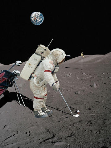 Lunar Golf - NASA White Modern Wood Framed Art Print with Double Matting by Astrolabs