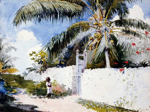 A Garden in Nassau White Modern Wood Framed Art Print with Double Matting by Homer, Winslow