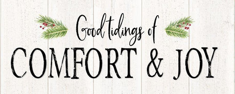 Peaceful Christmas-Comfort and Joy horiz black text White Modern Wood Framed Art Print with Double Matting by Reed, Tara