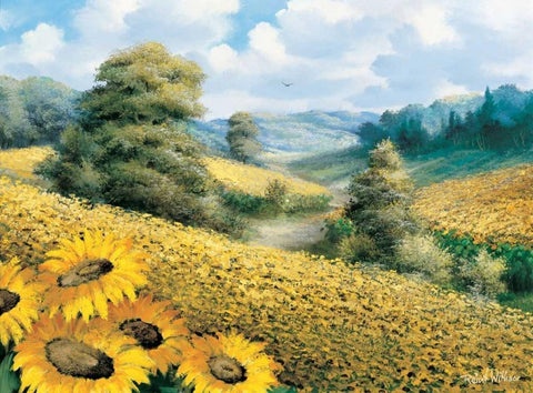Sunflower hill White Modern Wood Framed Art Print with Double Matting by Withaar, Reint