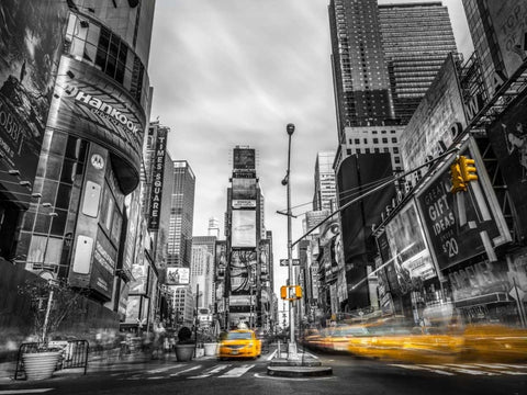 Traffic signal on broadway Times Square, Manhattan, New York City White Modern Wood Framed Art Print with Double Matting by Frank, Assaf