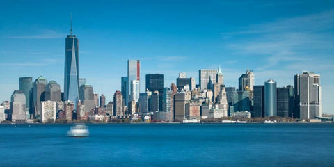Lower Manhattan Skyline with skyscrapers, New York White Modern Wood Framed Art Print with Double Matting by Frank, Assaf
