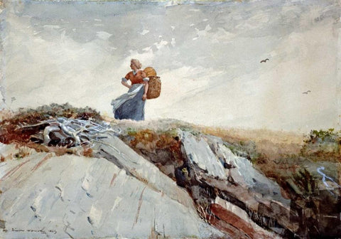Down The Cliff White Modern Wood Framed Art Print with Double Matting by Homer, Winslow