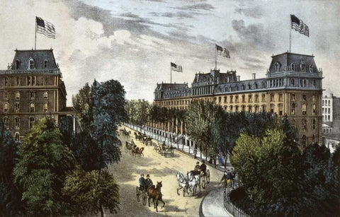 Saratoga Springs White Modern Wood Framed Art Print with Double Matting by Currier and Ives