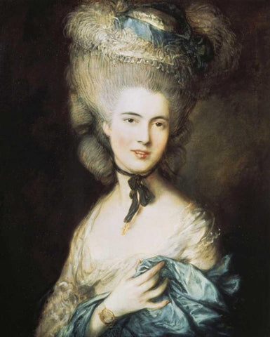 A Woman In Blue, Portrait of The Duchess of Beaufort White Modern Wood Framed Art Print with Double Matting by Gainsborough, Thomas