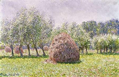 Haystack White Modern Wood Framed Art Print with Double Matting by Monet, Claude