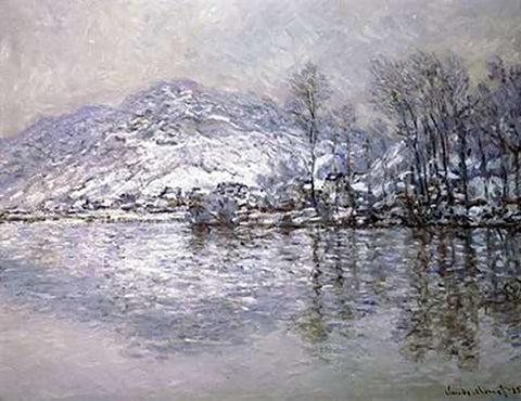 The Seine at Port-Villez, Snow Effect White Modern Wood Framed Art Print with Double Matting by Monet, Claude