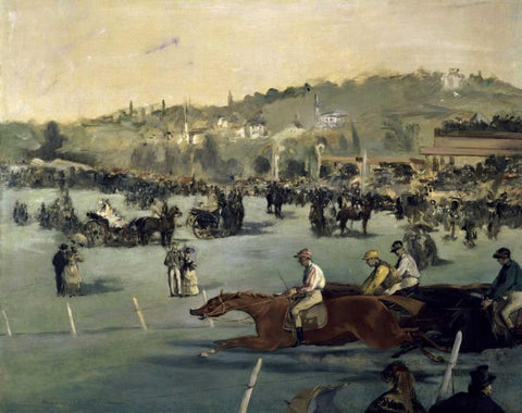 Horse Track White Modern Wood Framed Art Print with Double Matting by Manet, Edouard