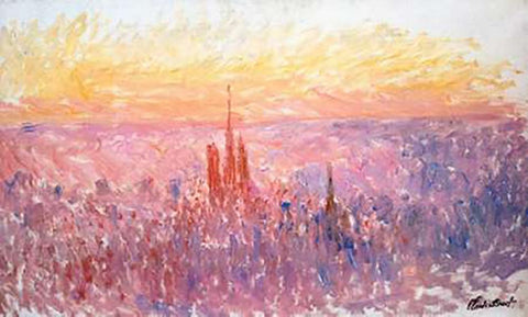 La Vue Generale De Rouen White Modern Wood Framed Art Print with Double Matting by Monet, Claude