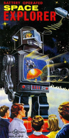 Battery Operated Space Explorer White Modern Wood Framed Art Print with Double Matting by Retrobot