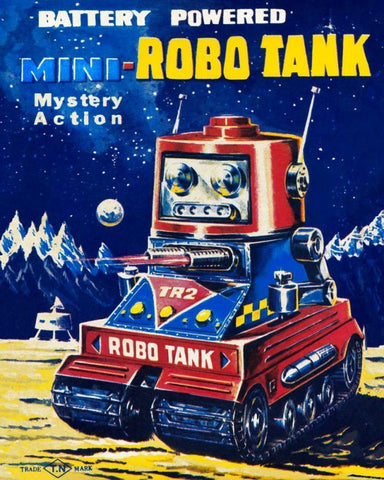 Mini-Robo Tank White Modern Wood Framed Art Print with Double Matting by Retrobot