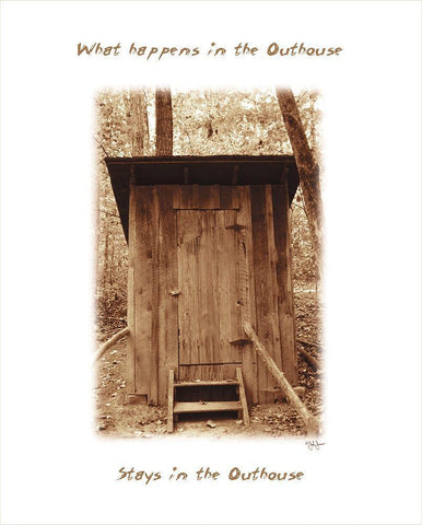 What Happens in the Outhouse White Modern Wood Framed Art Print with Double Matting by Jones, John