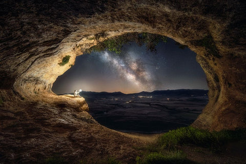 Caves Of Zaen I White Modern Wood Framed Art Print with Double Matting by Lopez, Bartolome