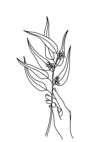 Seeded eucalyptus line art White Modern Wood Framed Art Print with Double Matting by Laiz Blursbyai, Rosana