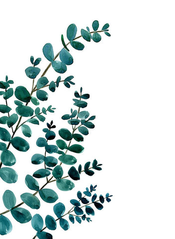 Teal watercolor eucalyptus II White Modern Wood Framed Art Print with Double Matting by Laiz Blursbyai, Rosana