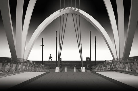 Seafarers Bridge White Modern Wood Framed Art Print with Double Matting by Donoghue, Adrian