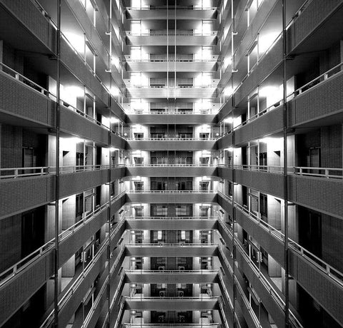 Corridor White Modern Wood Framed Art Print with Double Matting by Tajima, Koji