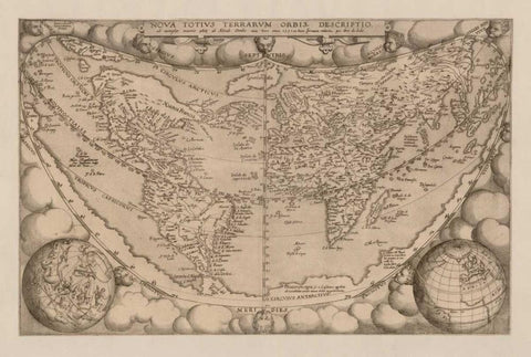 Nova tutius terrarum, 1571 White Modern Wood Framed Art Print with Double Matting by Ortelius, Abraham