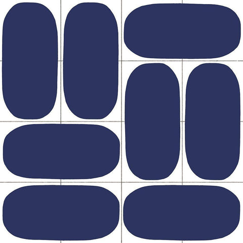 Geometric Oval Abstract, Blue White Modern Wood Framed Art Print with Double Matting by Inuit