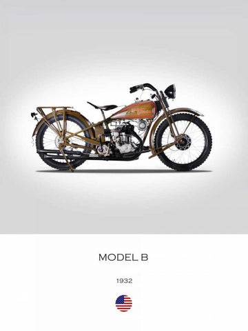 Harley Davidson Model B 1932 White Modern Wood Framed Art Print with Double Matting by Rogan, Mark