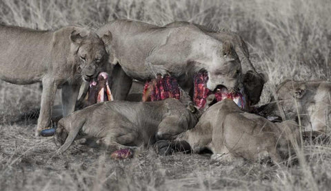 South Luangwa Lions White Modern Wood Framed Art Print with Double Matting by Bennion, Scott