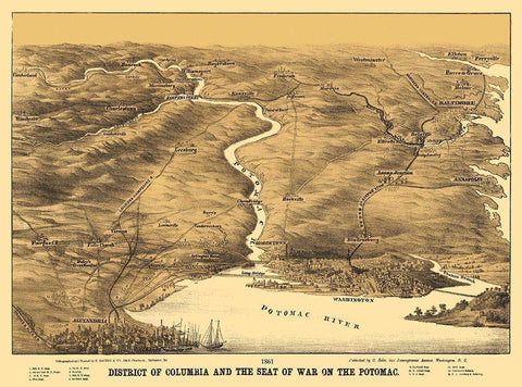 District of Columbia Seat of War On Potomac White Modern Wood Framed Art Print with Double Matting by Bohn