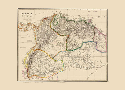 South America Colombia - Arrowsmith 1844 White Modern Wood Framed Art Print with Double Matting by Arrowsmith