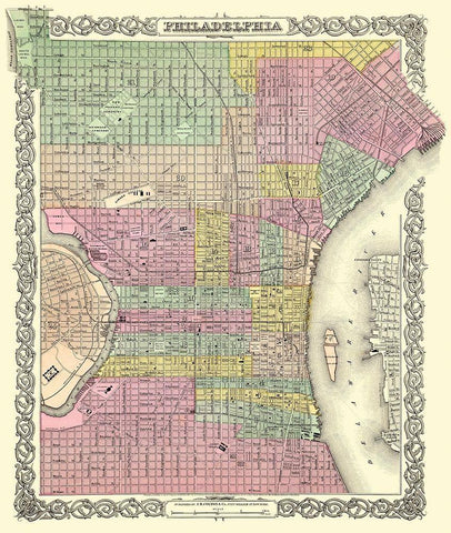 Philadelphia Pennsylvania - Colton 1855 White Modern Wood Framed Art Print with Double Matting by Colton