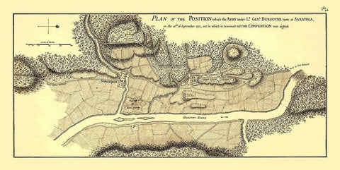 Position Burgoyne Took at Saratoga - 1777 White Modern Wood Framed Art Print with Double Matting by Unknown