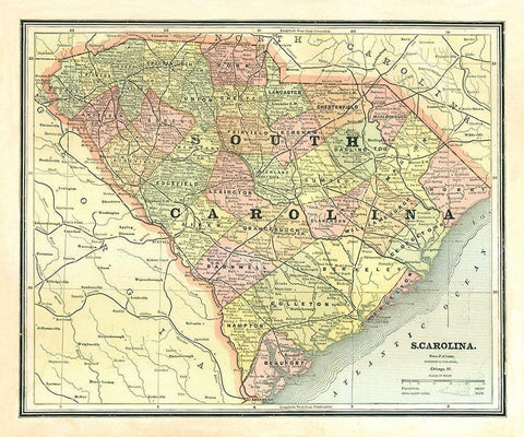 South Carolina - Cram 1886 White Modern Wood Framed Art Print with Double Matting by Cram