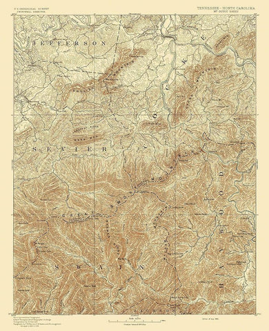 Mt Guyot Tennessee North Carolina Sheet White Modern Wood Framed Art Print with Double Matting by USGS