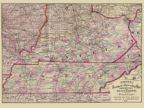 Kentucky and Tennessee Railroads and Townships White Modern Wood Framed Art Print with Double Matting by Cram