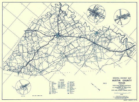 Austin Texas Highway - Highway Dept 1936 White Modern Wood Framed Art Print with Double Matting by Highway Dept