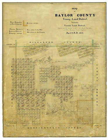 Baylor County Texas - Walsh 1859 White Modern Wood Framed Art Print with Double Matting by Rosenberg