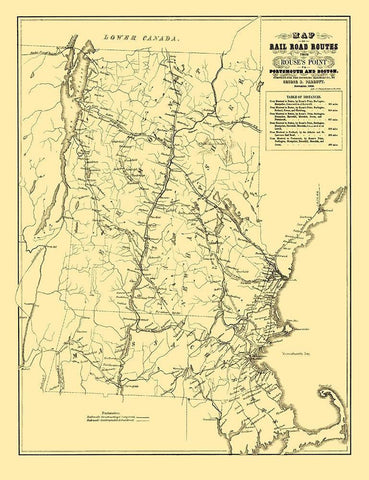 Portsmouth and Boston Railroad Routes 1848 White Modern Wood Framed Art Print with Double Matting by Parrott