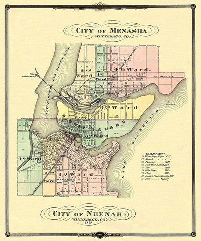 Menasha, Neenah Wisconsin - Snyder 1878 White Modern Wood Framed Art Print with Double Matting by Snyder