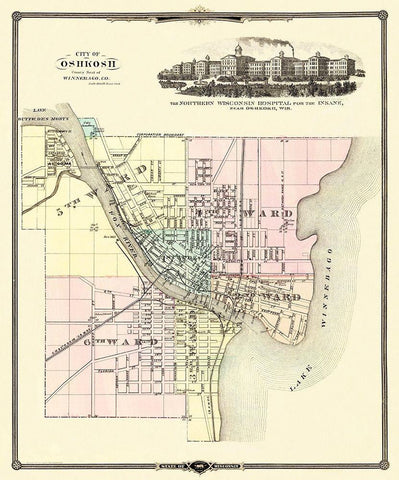 Oshkosh Wisconsin - Snyder 1878 White Modern Wood Framed Art Print with Double Matting by Snyder