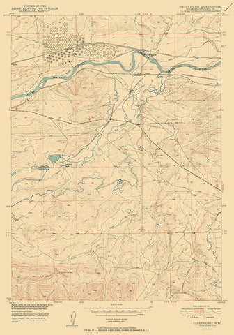 Careyhurst Converse Wyoming Quad - USGS 1950 White Modern Wood Framed Art Print with Double Matting by USGS