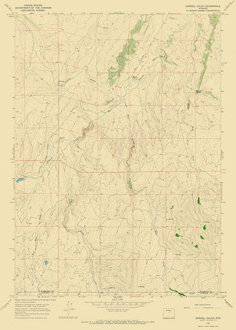 Cornell Gulch Wyoming Quad - USGS 1967 White Modern Wood Framed Art Print with Double Matting by USGS