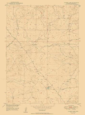 Gilbert Lake Wyoming Quad - USGS 1950 White Modern Wood Framed Art Print with Double Matting by USGS