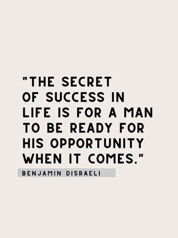 Benjamin Disraeli Quote: Secret of Success White Modern Wood Framed Art Print with Double Matting by ArtsyQuotes
