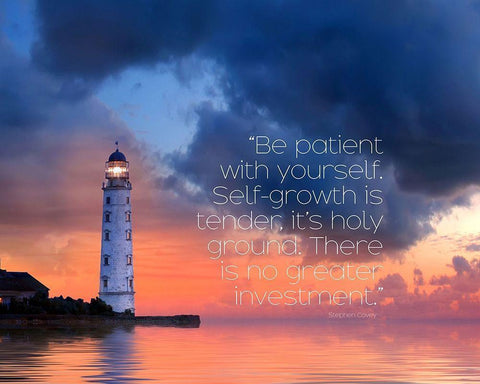 Stephen Covey Quote: Be Patient White Modern Wood Framed Art Print with Double Matting by ArtsyQuotes