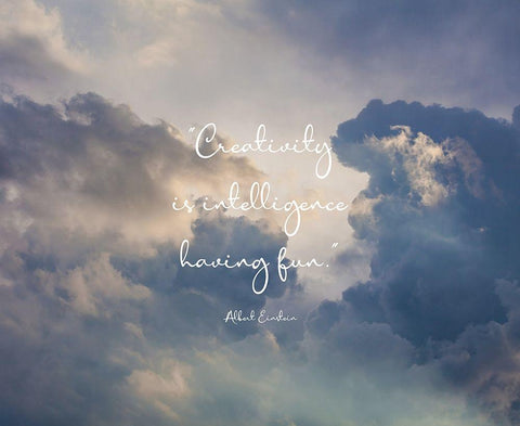 Albert Einstein Quote: Creativity White Modern Wood Framed Art Print with Double Matting by ArtsyQuotes
